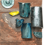 Técnica: Manipulação de imagens digitalizadas impressas em tecido. Pintura acrílica e relevos em resina.