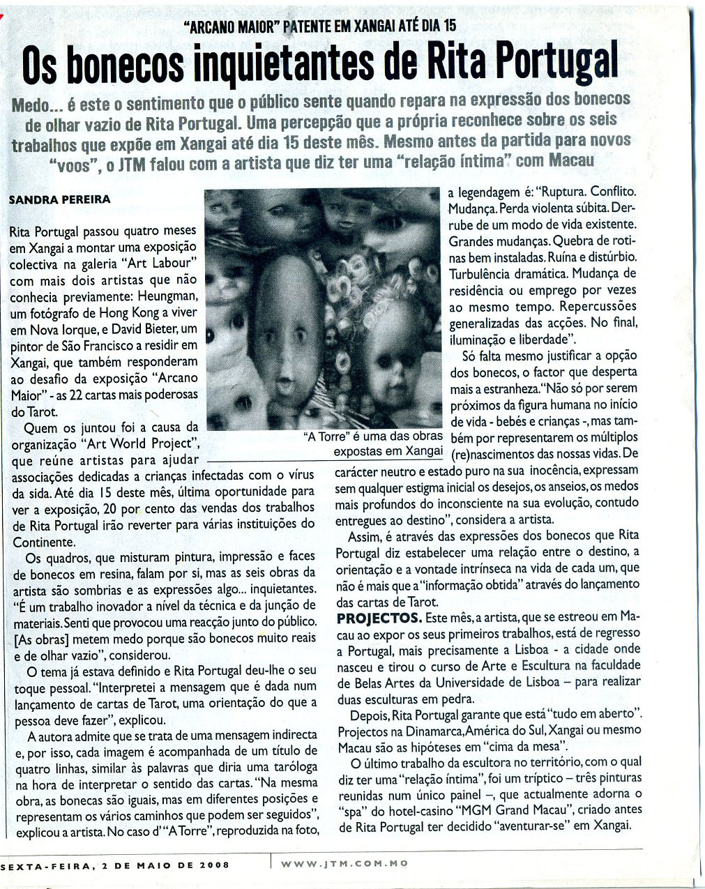 Escolhi bonecas, bonecas em forma de corpos jovens, porque através dos rostos das bonecas pude estabelecer a relação entre a vida futura de cada um como prevista pelas cartas do Tarot, fundida com os nossos desejos, vontades e medos. Com os rostos e corpos das minhas bonecas vou (re)nascer o futuro, pois as jovens bonecas parecem ser o nosso próprio (re)nascimento no nosso dia a dia e na nossa mente.